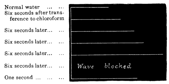 It may here be stated that after the sixty seconds of rest above recorded, the animal began another swimming bout. It was then immediately bisected, and the subsequent observations are detailed in the next footnote.