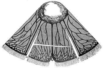 [3] This is the name given to a small annular sheet of tissue which forms a kind of floor to the orifice of the swimming-bell, through the central opening of which floor the manubrium passes. The structure is shown in Fig. 1.