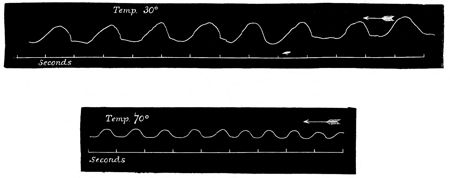 [22] If the reader takes the trouble to ascertain the average proportion between the number of pulsations and the seconds of rest in the first observations as far down as the first long pause, viz. as above stated, 185/211, and if he then balances the succeeding income and expenditure of energy of all the rest of the observations, he will find the net result to accord very precisely with the proportion he previously obtained. But, as already stated, any such precision as this is certainly the exception rather than the rule.
