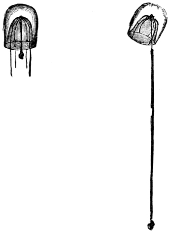 In size, the different species of Medusæ vary from that of a small pea to that of a large umbrella having streamers a hundred feet long. The general form of these animals varies in different species from that of a thimble (Fig. 1) to that of a bowl, a parasol, or a saucer (see figures in subsequent chapters). Or we may say that the form of the animals always resembles that of a mushroom, and that the resemblance 11 extends to a tolerably close imitation by different species of the various forms which are characteristic of different species of mushrooms, from the thimble-like kinds to the saucer-like kinds. Moreover, this accidental resemblance to a mushroom is increased by the presence of a central organ, occupying the position of, and more or leas resembling in form, the stalk of a mushroom. This organ is called the "manubrium," on account of its looking like the "handle" of an umbrella, and the term "umbrella" is applied to the other portion of the animal. The manubrium, like the umbrella, varies much in size and shape in different species, as a glance at any figures of these animals will show. Both the manubrium and umbrella are almost entirely composed of a thick, transparent, and non-contractile jelly; but the whole surface of the manubrium and the whole concave surface of the umbrella are overlayed by a thin layer or sheet of contractile tissue. This tissue constitutes the earliest appearance in the animal kingdom of true muscular fibres, and its thickness, which is pretty uniform, is nowhere greater than that of very thin paper.