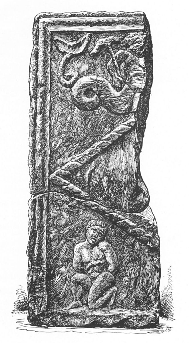 To the evidence derived from classical writers as to the nakedness of some of the inhabitants of early Britain, it is possible to add the evidence of the memorial stone. This example is reproduced from Sir Arthur Mitchell's Past in the Present, and there is at least one other example. |