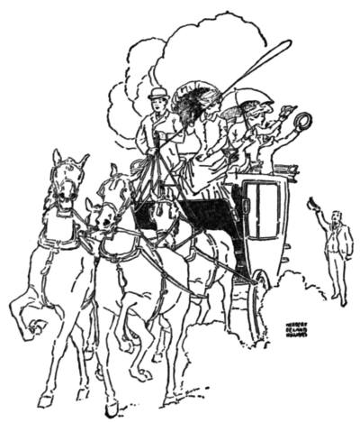 "No," from Selina to Tuttle aloft, "don't get down. Or can Jehu on the box get down? Culpepper'll put me up. Mrs. Jones, Mrs. Sampson, Miss Lyle, Mr. Haven, you all up there know Mr. Buxton? I've never mounted a coach before, and I'm horribly afraid I'll perpetrate what a friend of my youth, when she sprained her ankle, called a faux pas. Do give me your hand, Culpepper, and put me up?"