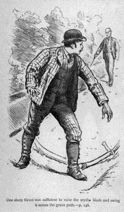 John Grange glanced at the bailiff, and then stooped and picked up the coil of rope, passed it over his shoulder, and then seized the saw. He mounted the ladder, and clinging to the tree, stood on the last round, and then climbing actively, mounted the remaining ten feet to where he could stand upon a branch and attach the rope to the stump, pass the end over a higher bough and lower it down to the others. Then rolling his sleeves right up to the shoulder, he began to cut, the keen teeth of the saw biting into the soft, mahogany-like wood, and sending down the dust like sleet.