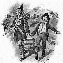 There was a tent or two as well where the surgeons worked at their terrible task, and it happened towards the height of the terrible conflict, when the British soldiers were struggling and gaining their way step by step, every foot being desperately contested by the brave army of the French General Montcalm, that Phil was busy in a wide sheltered spot beneath the enemy’s lines, tin cup in one hand, holding on to the iron handle of a bucket with the other, the bucket pretty full of water, and swinging between him and a drummer boy.