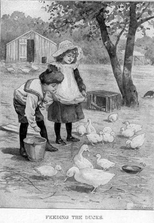 She had hardly spoken when the sunshine returned to her pretty little face, for, though she did not know it, that sorrowful countenance had quite softened Cook’s heart, and she stood in the kitchen doorway, calling the young people and waving a steaming white basin, which she set down on the window-sill with a bang.