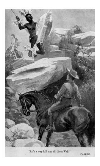“I dunno. Father sent me to fetch you while he got the guns ready. He said something about mounted men on the other side of the kopje, so it can’t be Kaffirs. I say, do back me up, Val, and get father to let me have a gun.”