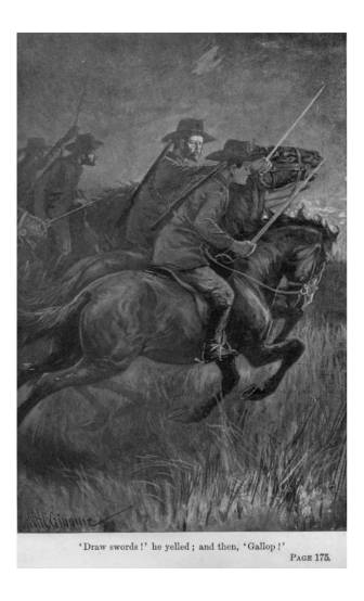 “Officers hear them coming. Prepare for cavalry. Here they come. They’ve rallied, and— No, no. Hark! Hark! Hurrah! No, no; don’t cheer, my lads. They’re racing for their lives, and there’s a line of cavalry after them.”