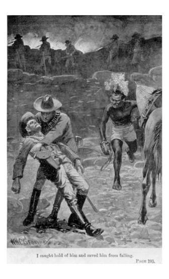 It was very stupid and boyish; but we were excited, I suppose, with the motion of our horses and the elasticity of the morning air. Just then Bob rose in his stirrups in answer to a sign from Denham, clapped his fist to his mouth, and brought forth a capital imitation of a trumpet’s blast, which made the horses stretch out and tear away close together over the open veldt as if in answer to the cry which thrilled me with recollections. For Denham, too, had risen in his stirrups, thrown his hand above his head, and shouted, “Charge!”