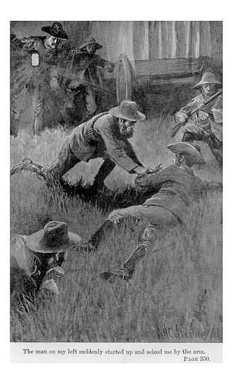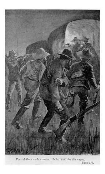 The two men who were chafing our deadened ankles sprang to their places, while my brother reached out of the side of the wagon and dragged in two rifles, evidently their own, and Denham and I cocked the revolvers we had thrust back into our breasts.