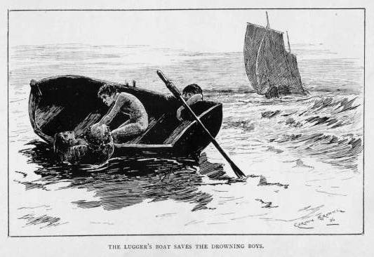 Then in a blind confused way, with the water seeming to thunder in my ears, I loosened my hold, and almost directly my head popped out into the fresh air, and I swam to the boat amidst a furious burst of cheering.