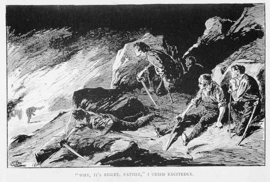 In this case Bob went first, I followed, and Bigley came last, and though we two stuck more than once, he never did, his weight overcoming the friction of the stones to such an extent that, towards the last, he charged down upon us and we all rolled over together into a heap.