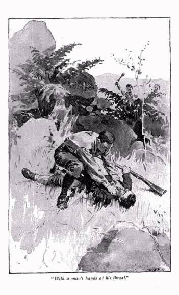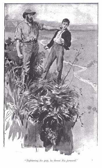 The two men sprang up quickly, and Nic was in the act of rising too, presenting the gun, when there was a quick rustle, and a tremendous load fell across his back, driving him forward; the gun went off, and the boy was wrenched round and over upon his back, with a man’s hands at his throat, heavy knees upon his chest, and the horribly savage eyes of the ruffian of whom he had been thinking a minute before glaring into his.