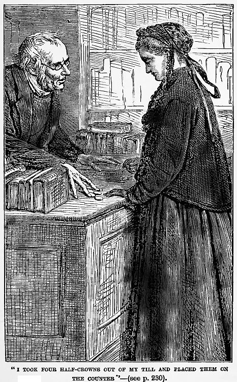 Three months—six months—nine months passed away, and hope was dead within my heart. They said I had grown much older and more careworn. Madame said I worked too hard, and the sharp business woman became quite motherly in her attentions to me. It was then I learned for the first time how good and true a woman was she whom I served. Her battle with the world had made her keen and firm in her dealings with her work-girls, for hers was no life of ease. The ladies she had to toil for were exacting and thoughtless to a degree, and constant business worries had made her at times most cold and strict, but she was always a lady, and more than once I felt that she must have moved in a sphere superior to my own. She had of late become most kind to me and pressed me to have a holiday. But I would not take any change, for work was like balm, it blunted my thoughts; and knowing that I was daily growing pale and thin, I still waited.