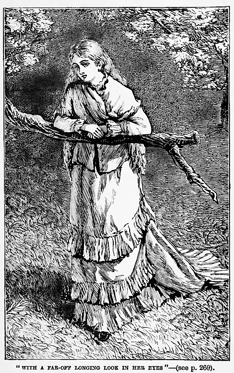 “It was as nearly as could be a year after, that I, feeling ten years older, went to seek her one afternoon, and found her as I expected, in the little wood, standing dreamy and sad in her old position leaning upon the tree, listening to no bird-song now, but with a far-off longing look in her eyes, that swept away the last selfish thought from my heart.