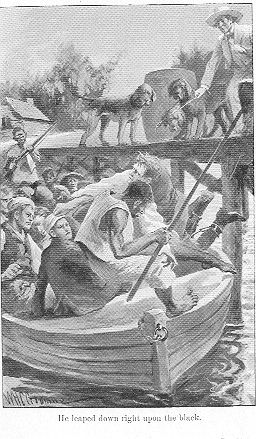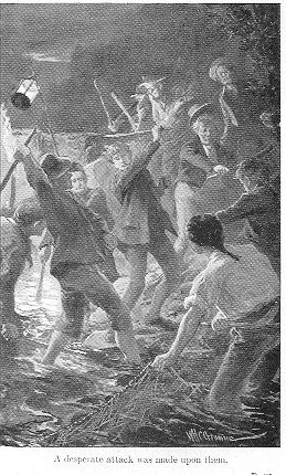 He succeeded, but only for a moment, just sufficient to save himself and receive another heavy blow from the pole, which made him lose his hold and slip, more than fall, down to where he was on the same level with his adversary, who drew back to strike again.
