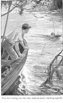 But his attention was fixed upon the curve, and as he watched he saw something silvery flash out of the brown water and fall back into the pool where the foam was thickest.