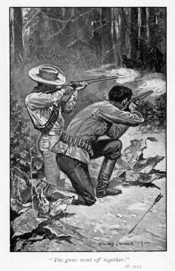 “But it’s a feverish sort o’ place, gentlemen, very hot. There’s lot’s o’ dangerous and poisonous things about, and I have heard that the Injuns on the banks have a bad habit of shooting poisoned arrows from their bows, or little tiny ones from their blowpipes. Ain’t it rather a mad idea?”