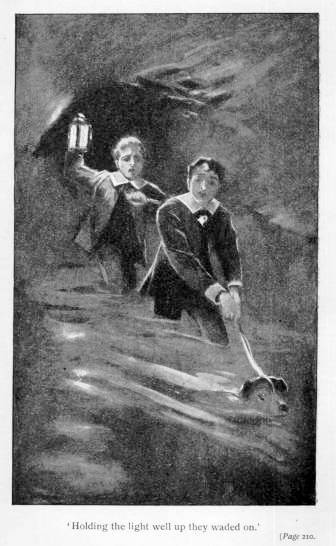 Just about this period, without saying anything at home, Gwyn and Joe, who had passed a good deal of time beneath the cliffs at low-water, to try and find out anything suggestive of an attempt being made to destroy the mine by an explosive—finding nothing, however, but a few places where the rocks had been chipped down by the point—determined to examine the spot from which they had escaped by the help of Vores.