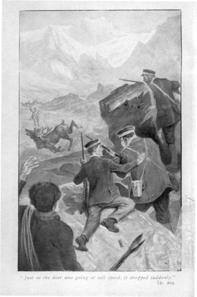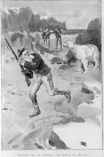 The next minute Steve rose to his feet, and, hardly knowing what he was doing, dragged the canvas doorway open, and staggered out of the darkness and down the snow steps into what looked once more a world of silvery light; for the moon was at the full, and it seemed nearly as light as day. In his delight the dog threw himself on his side to force a way through the snow, and then turned over to repeat the performance, and leap and race round his master, who stood shading his eyes from the light, and staring before him at something misty and spectral-looking in the distance. Finally the dog burst into a joyous peal of barking at the objects which had struck his master, and there came the sharp report of a gun, followed by a rolling volley of echoes.