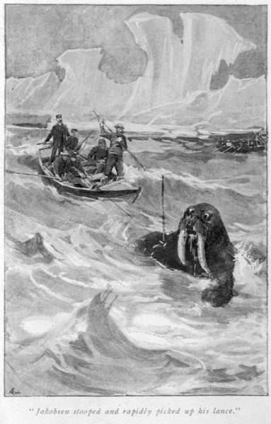 “Thank you, thank you. Well, you can help me in several ways. As an old ice-goer you can give me many hints. Above all, as a brother-sailor you know the value of a good crew. I have some trusty men, but I want four more—young, strong, hearty, Norway lads, who have been well among the walrus, and who can tackle a whale or a bear.”
