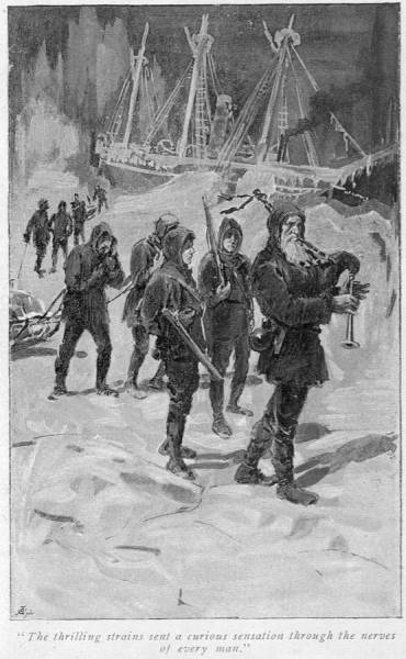Next morning the head of the stout little steamer was laid for home, and the crew gave vent to the heartiest of cheers, which increased to a roar of delight as Andrew, forgetful of all past suffering, made his appearance, proud and solemn-looking, to march round the deck with his pipes, driving Skene the dog below with crest and tail drooping, and his sharp, white teeth bared to the gums.