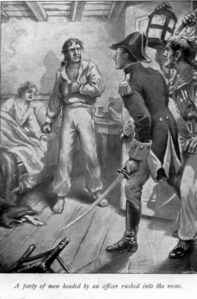 He knew the next moment, for the door was burst open with a crash and a party of men headed by an officer in uniform rushed into the room, filling it with light, for three of them bore ship’s lanthorns, and Jack found that the warning had come too late, for he was seized by three men before he could even think of resisting, and held tightly with his back to the wall. “Only one, my lads?” cried the officer.
