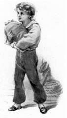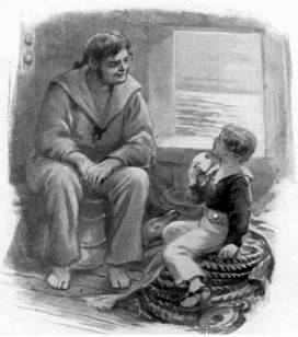 “No, sir,” said the little boy, shrinking; for the man now took a step forward and clapped a big, brown, tarry hand upon his shoulder.