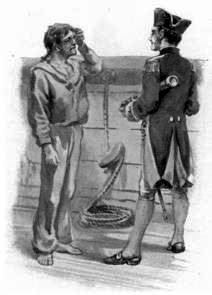 “I am satisfied, madam,” said the officer, smiling. “So, then, we are to lose our little powder monkey? You are going away, then, sir?”