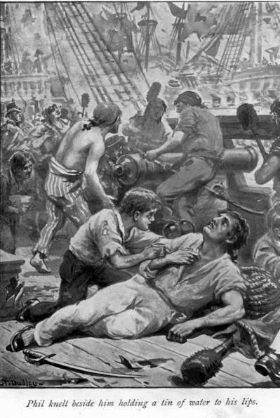 Phil was not afraid, for he could not see the danger, and he laughed and liked to run up and down from the powder magazine to the main deck, because the big bluff men always laughed and said pleasant things to him. He was not afraid either on that day when Jack Jeens looked very serious and sponged his face for him over a bucket of water.