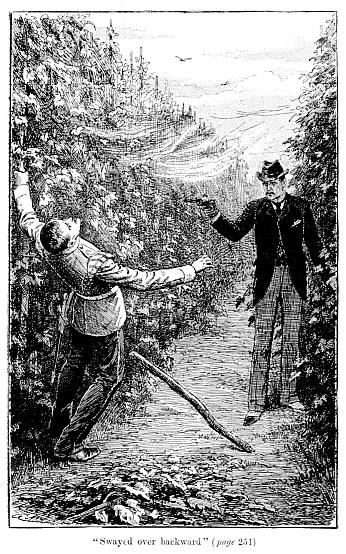 “Oh, no; not likely,” said Jerry, with a derisive grin. “He’s too nice and innocent a young gentleman as to think that sooner or later you’d be making him give up the title and the money. He wasn’t likely to say to himself, ‘I’ll walk right away into the lonesomest place I can find, and coax him on and on till I get him where there’s not a soul likely to be about, right down in one of the hop-gardens.’ He wouldn’t ever dream o’ taking a loaded revolver with him and shoot you, so as to be able to enter to the property and be Sir Mark—not him!”