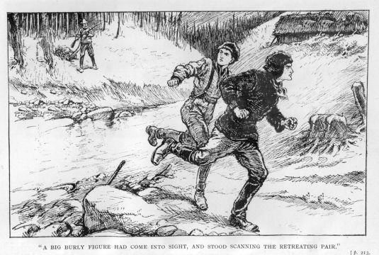 “Louder, my lad, louder. Call police: there’s some over yonder in Canady. Haul off that fur coat, lads. It’ll just fit me, and I’ll have his cap and gloves. That’s right. Now then, my whippersnapper, off you go!”