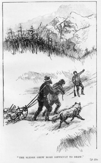 “Lightens the load and me too,” he said with a laugh, as he thrust his head through the loop and tugged at the sledge; but it did not seem lighter. It grew more heavy, and the obstacles were terrible to surmount.