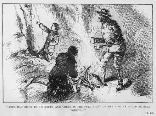 Tregelly brought forward more wood from the shelter they had formed; the fire burned more brightly; bacon was frying, and the fragrance of coffee and hot cake was being diffused, when, just as Dallas was thinking of awakening his cousin to the change in their state of affairs, a hoarse cry aroused him and made him look sharply at where, unnoticed, Abel had risen to his knees; and there, in the full light of the fire, he could be seen pointing.