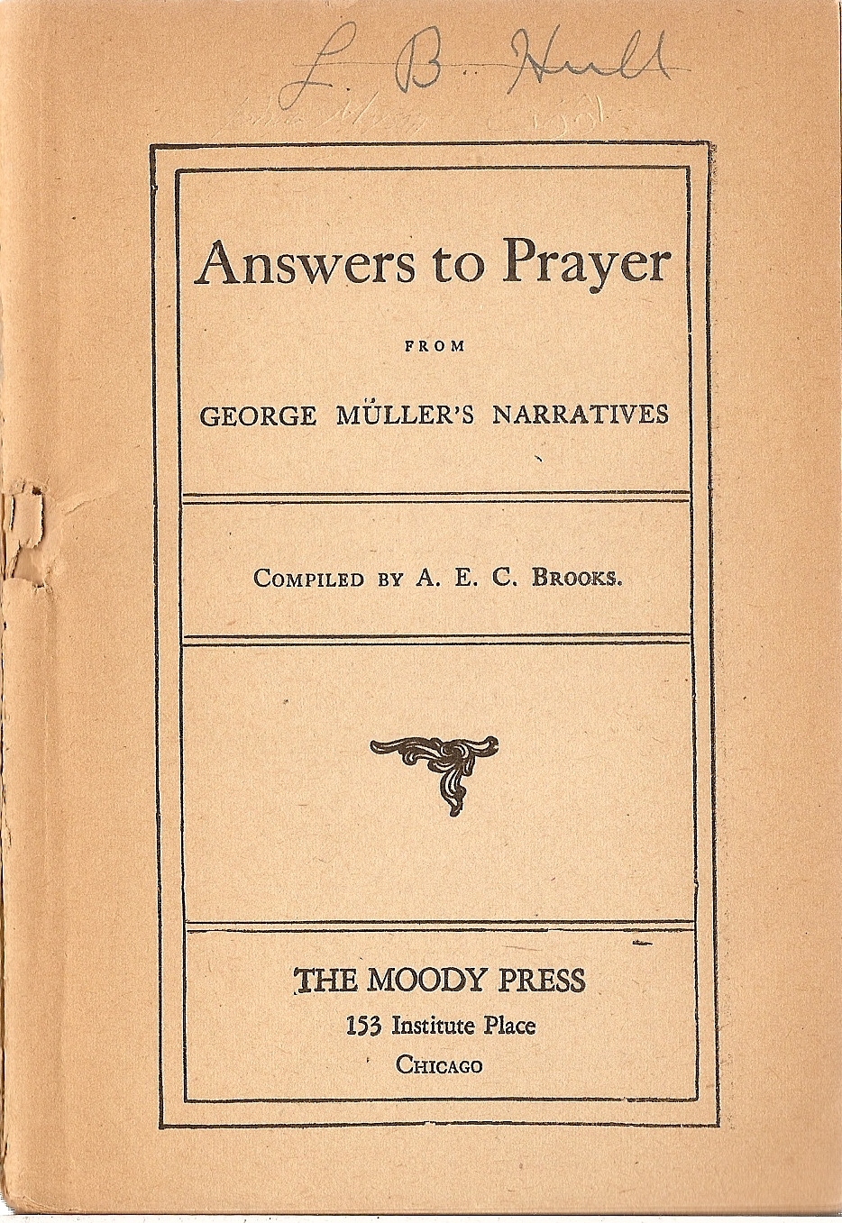 Mr. Brooks, in this compilation, has endeavored to select those incidents and practical remarks from Mr. Müller's Narratives, that show in an unmistakeable way, both to believers and unbelievers, the secret of believing prayer, the manifest hand of a living God, and His unfailing response, in His own time and way, to every petition which is according to His will.
