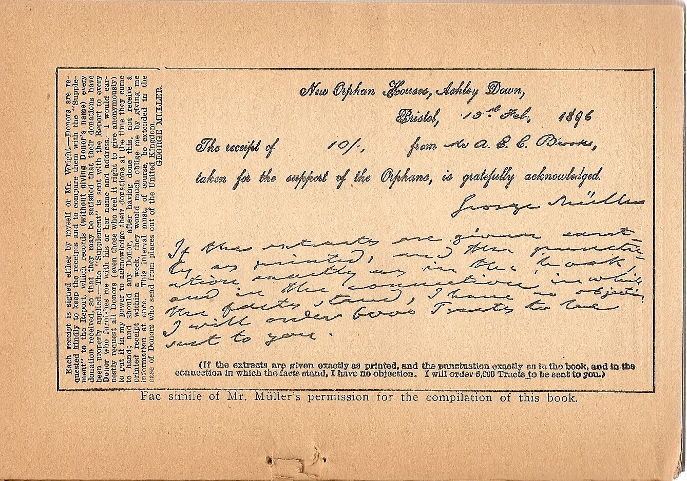 Illustration: Fac simile of Mr. Müller's permission for the compilation of this book.
