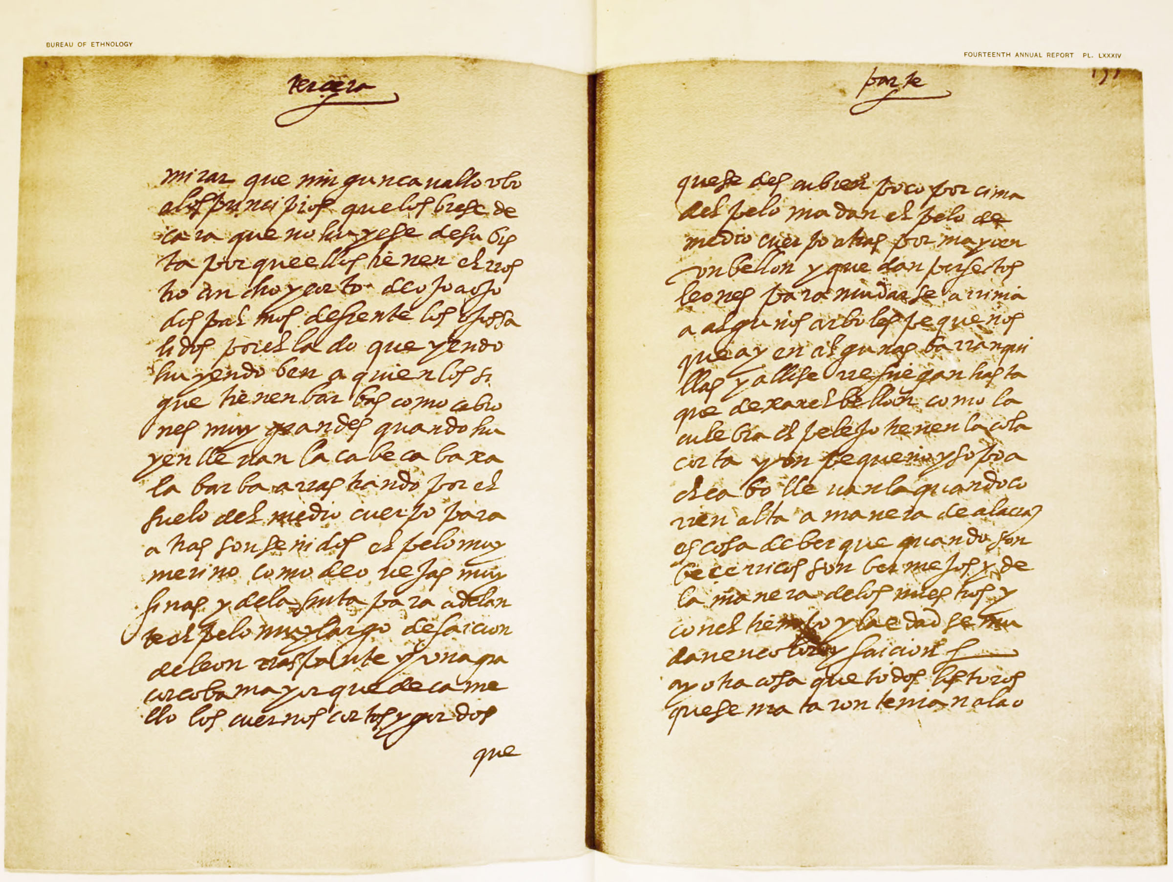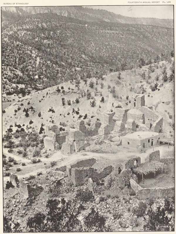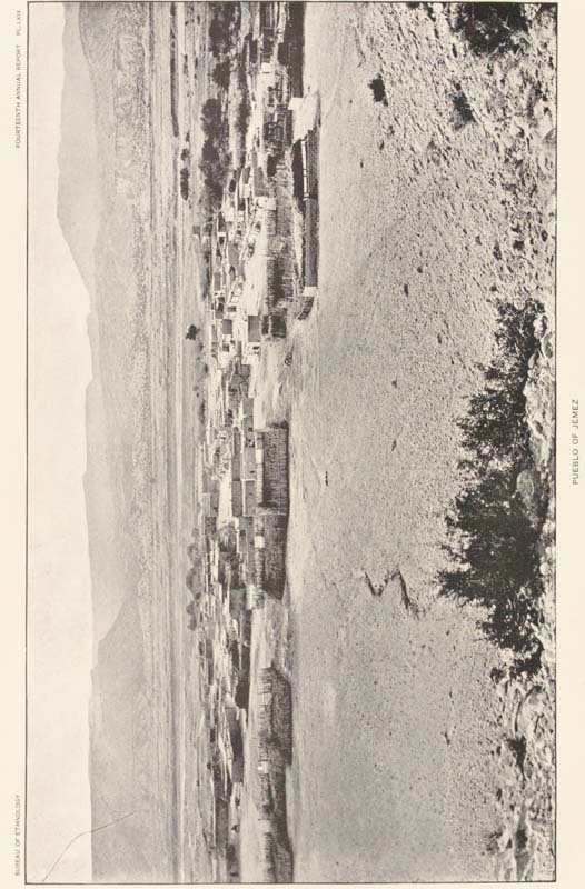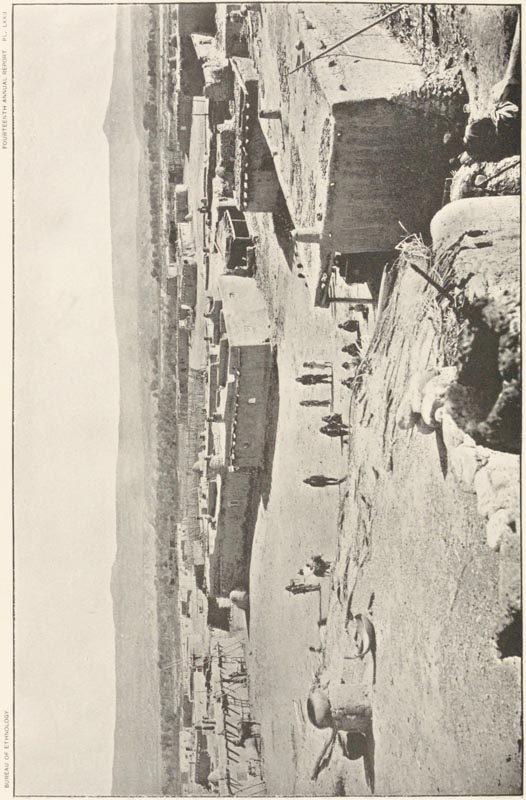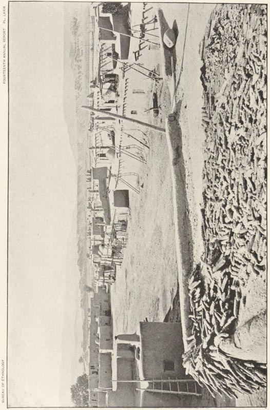 Original printed spelling and grammar are retained, with a few exceptions noted below. ¶ The transcriber created the cover image, and hereby assigns it to the public domain. Illustrations have been moved from their original locations to nearby places between paragraphs. The Plates are shown herein in their original printed order, but notice that Plates LXXXII to LXXXIV are located between Plates LIV and LV. Many of the Plates are linked to larger, better resolved images via the glyph ◊ located in the caption. These larger images are available only in the html edition. ¶ Footnotes have been renumbered 1–379, and changed to endnotes. ¶ The original index included references to other material located on pp i–328 of the Fourteenth Annual Report Part 1. The entries that reference pages 329–613 (The Coronado Expedition) have been excerpted and inserted herein after the endnotes.