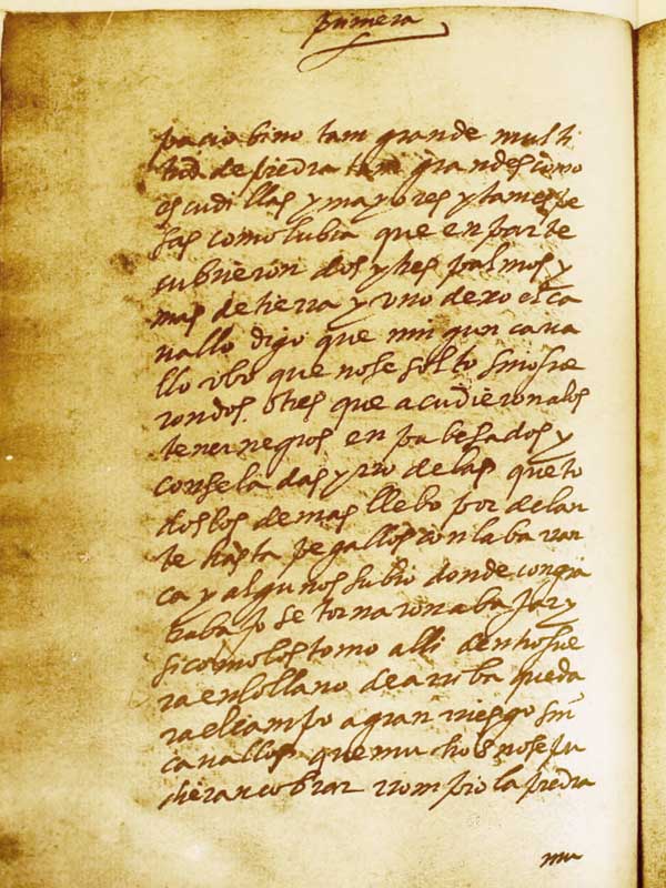 Capitulo ueinte como cayeron grandes piedras en el campo y como se descubrio otra barranca donde se dibidio el campo en dos partes