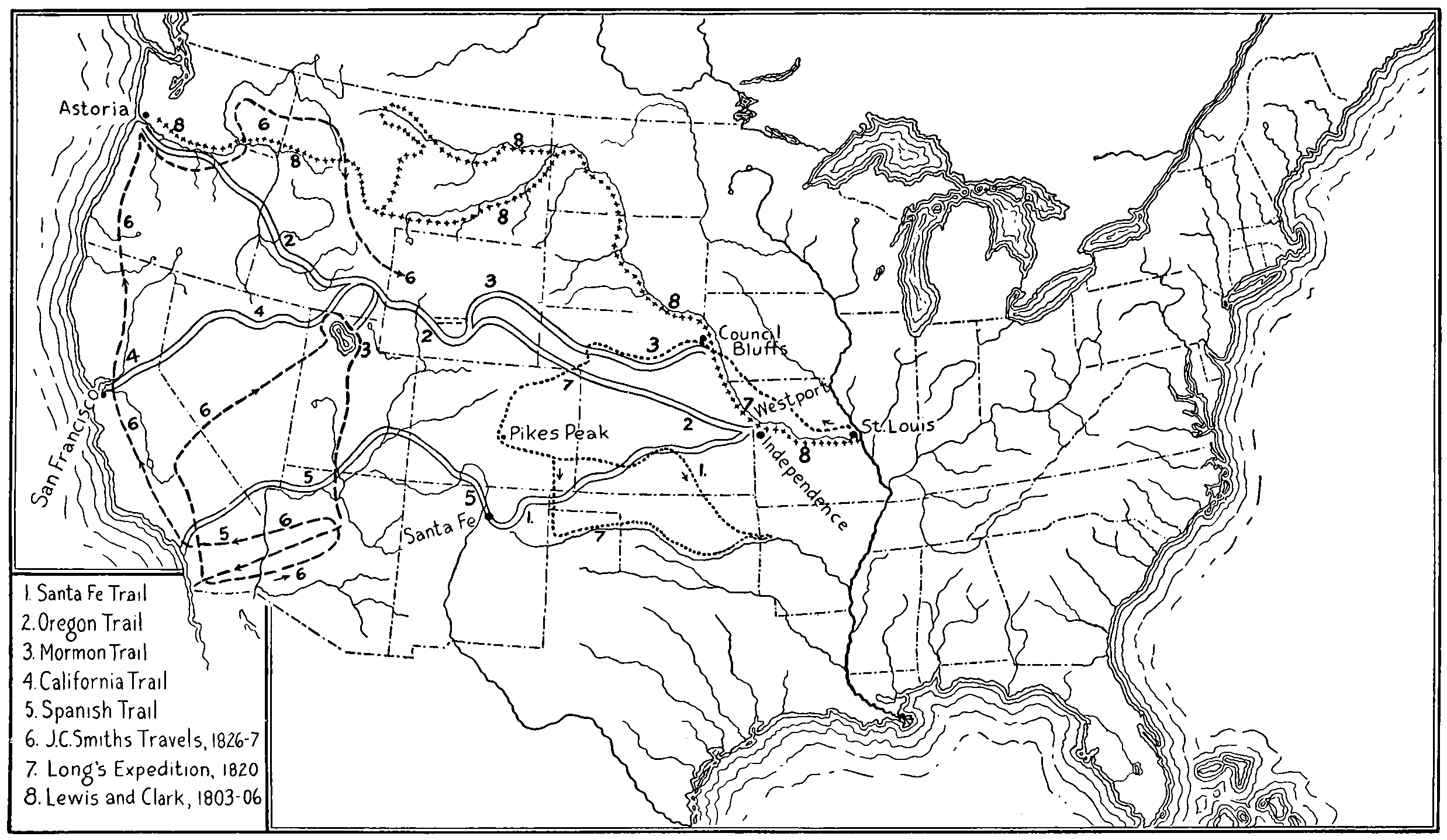 | Showing Transcontinental Trails in the United States. | ||||