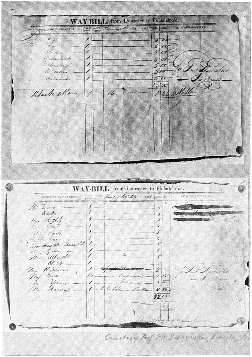 | Used on the Slaymaker Stage Line from Lancaster to Philadelphia, 1815. (Courtesy of Prof. P. K. Slaymaker, Lincoln, Nebr.) | ||||