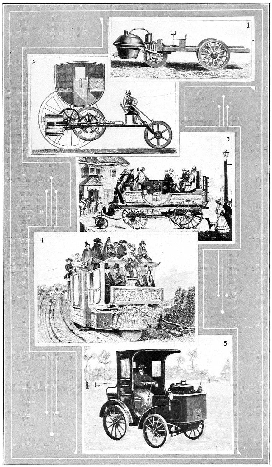 Leaving the old world there is sketched all too briefly the development in the United States of transportation facilities from the coastal and natural waterways, from the pack and trail, used by the aborigine and early settlers, through the treks of the pioneers, the periods of canal digging, the toll road competition, and the railway frenzy, to the advent of the modern road with the coming of the bicycle and automobile and their wonderful accelerative impulse.