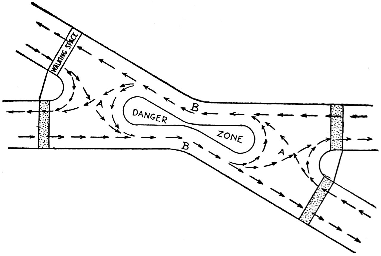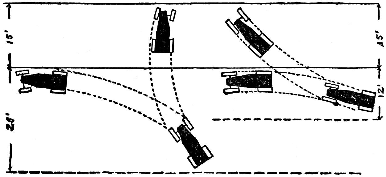 | Accidents Result of Disorder, Codes to Prevent, Automobile Accidents Lead in Number. Causes: The Driver — Mentally or Physically Unfit, Ignorant, Indifferent, Reckless; Driving and Operating: Recklessness, Speeding, Around Sharp Turns, Passing Cars. Horns. Stopping Cars on[xv] Grades, in Streets, etc., Backing. Other Forms of Carelessness. The Car: Skidding, Brakes, Flexibility, Steering and Turning Ability, Lights, Unlighted Vehicles, Speedometer. Bad Roads: Slipperiness — High Crowns, Embankments and Guard Rails, Super-elevation — Rule for, Clear Vision, Curves, Bridges and Culverts. Railway Crossing Accidents: Prevalency, Elimination of Crossings — Cost, Automobile Drivers Careless — Observations, Methods of Mitigation; Bridge Clearance. Pedestrians — Jay-walkers, Obstacles that Obscure Vision, Pedestrians on Country Roads, Slow Going Vehicles, Bicycles. Road and Traffic Regulations: Development of, Council of National Defense Code, Education Necessary. | |