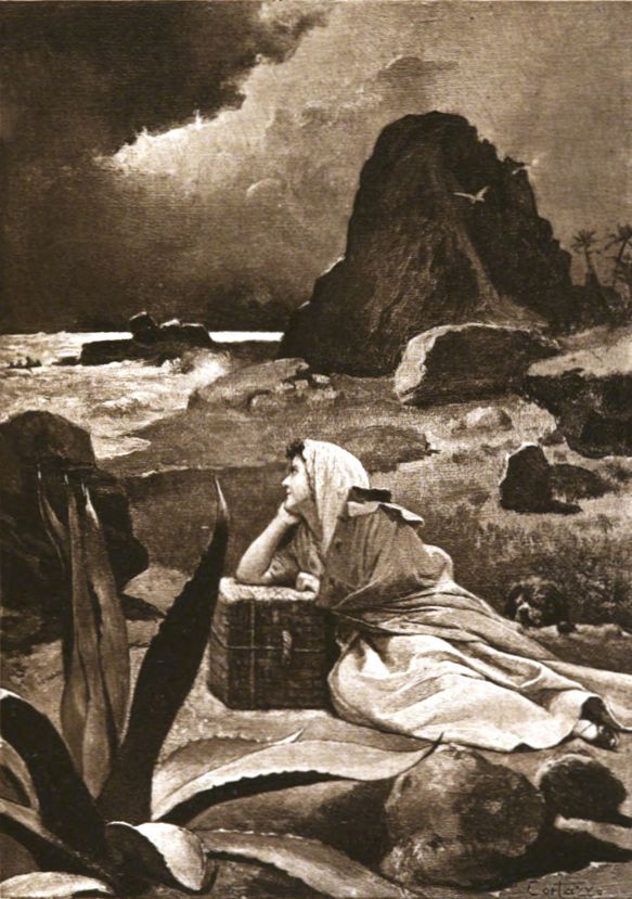 "Often as I sat alone on this cliff I wrung my hands frantically as I listened to all the sounds of spring time and of love which the mountain gives forth, as I saw the creepers chase each other to and fro, the insects sleeping in a voluptuous embrace in the calyx of a flower, as I inhaled the burning dust which the palm-trees sent to one another—ethereal transports, subtle joys to which the gentle summer breeze serves as a couch. At such times I was frantic, I was mad. I appealed for love to the flowers, to the birds, to the voice of the torrent. I called wildly upon that unknown bliss, the mere thought of which made my brain whirl. But I would see you running toward me, along yonder path, merry and laughing, so tiny in the distance and so awkward about climbing the rocks that one might have taken you for a penguin, with your white dress and your brown hair. Then my blood would grow calm, my lips cease to burn. In presence of the little Indiana of seven I would forget the Indiana of fifteen of whom I had just been dreaming. I would open my arms to you with pure delight; your kisses would cool my forehead. At those times I was happy; I was a father.