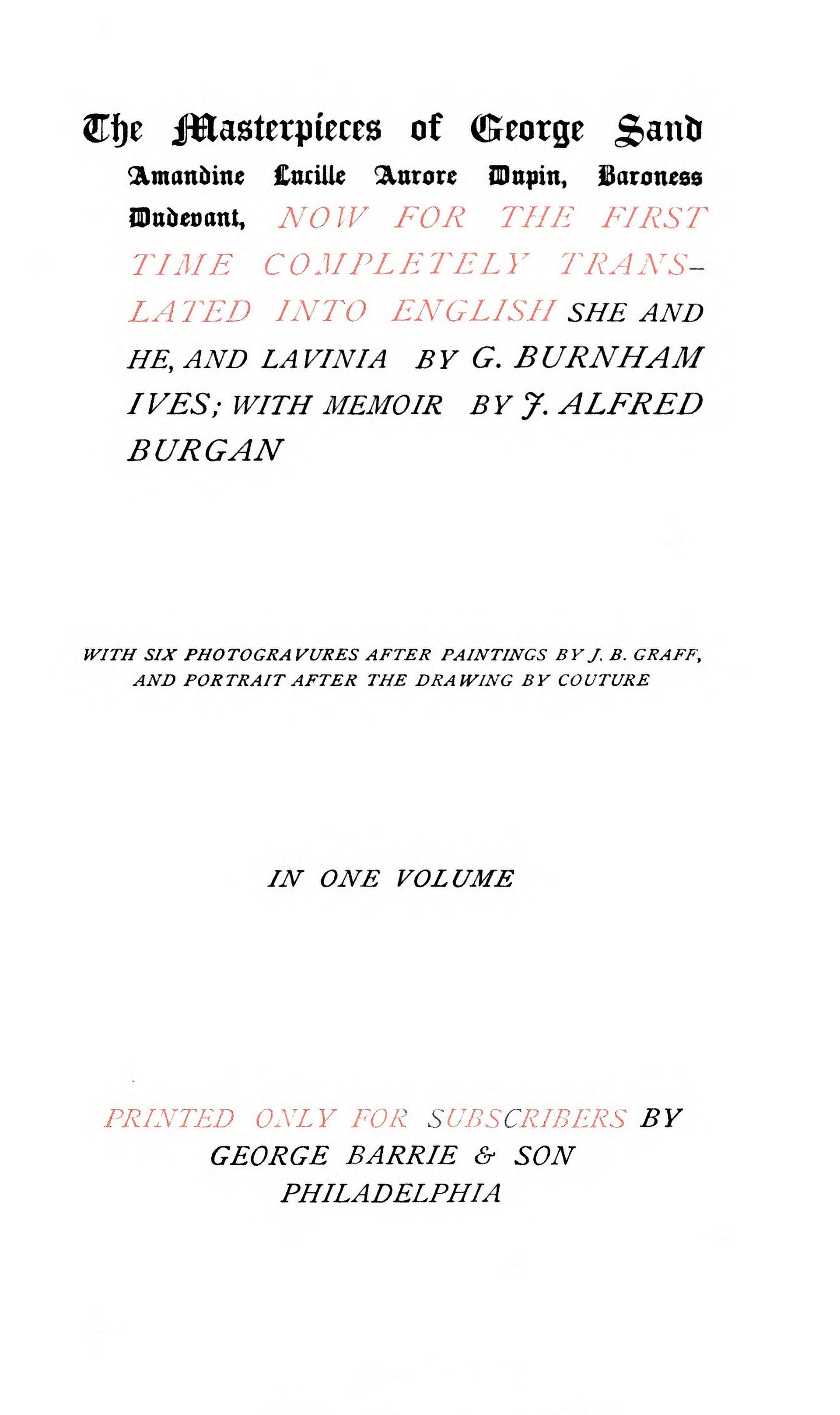 The Masterpieces of George Sand,