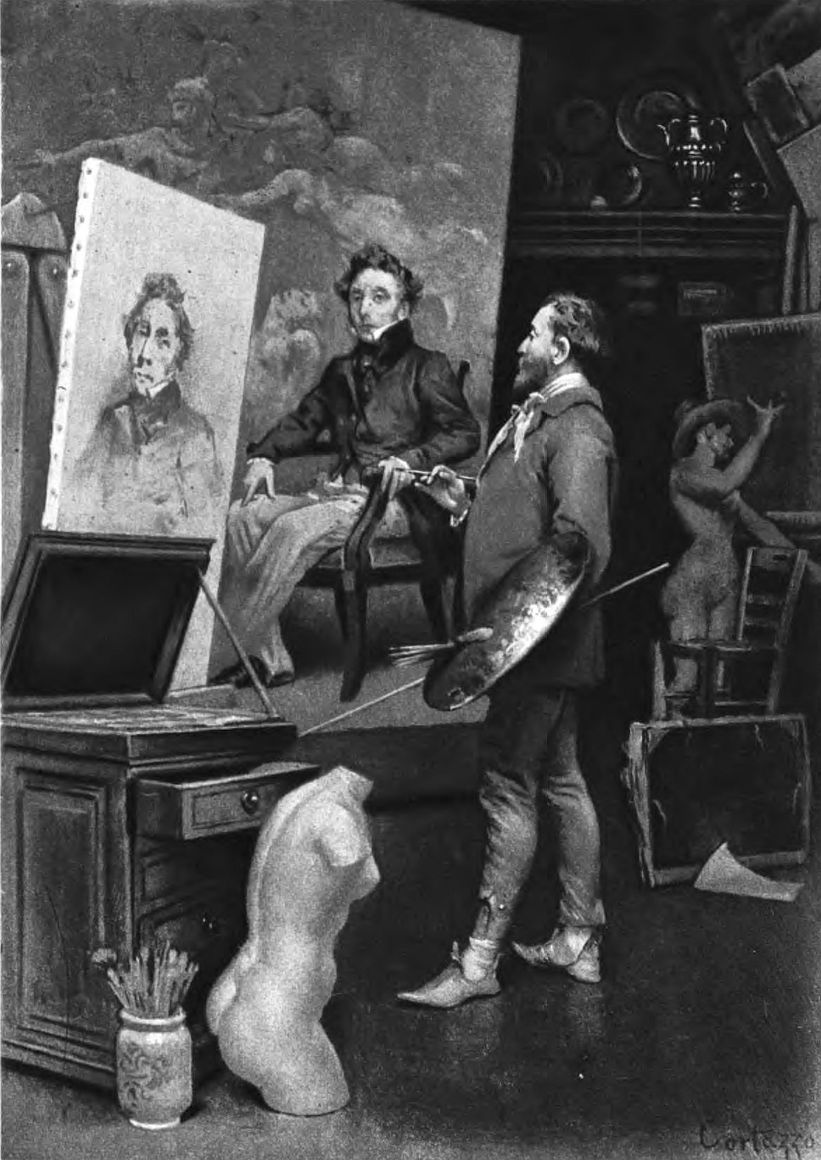 In 1829, Monsieur and Madame Dudevant passed two months in Bordeaux and at the home of her husband's mother; and on her return to Nohant in July she resumed her quiet home life, restricting the circle of her friends in conformity with her retired tastes. Here they enjoyed the society of her half-brother and his wife. But the period of outward calm and resignation to her condition was fast nearing its term. The relations between the husband and the wife were rapidly growing worse. Among the wife's occupations and diversions of this period were painting and composition. Of the former, Madame Dudevant speaks with enthusiasm later; already, in 1827, she had tried her hand at portrait-painting, for in a letter to her mother she writes: "I send you a profile drawing done from imagination; it is a regular daub. It is well that I should tell you that it is intended as a representation of Caroline. I am the only one who sees a likeness in it.... I also drew my own portrait.... Yet I did not succeed better than with Caroline's.... I laugh in its face on recognizing how pitiable it makes me look, so I dare not send it." And again, early in February, 1830, she sends a portrait of her son to her mother. It is well, as we shall soon see, that Madame Dudevant was so little encouraged by her efforts. Yet of her literary proclivities, which she also indulged by attempts at novel-writing, she was certainly not convinced, and of her ability in this direction still less so.