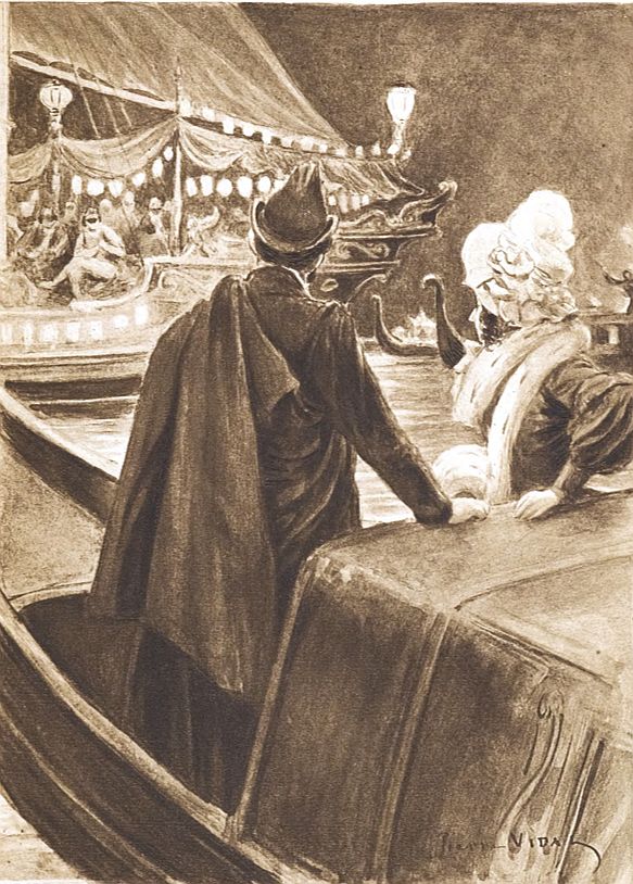 A gayly-decorated boat filled with maskers and musicians was coming along the Giudecca Canal. I suggested to Juliette that we take a gondola and row near to it, to see the costumes. She assented.