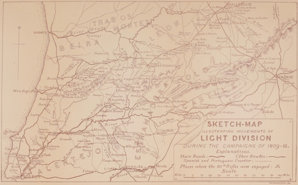 Our history opens with a letter from George in May 1809 to his parents at Beverley, announcing that he is about to embark at Dover for Portugal with the 1st Battalion 95th Rifles, and recounting Colonel [xiv]Sibthorp's well-meant but inopportune efforts to retain his services in the Militia.