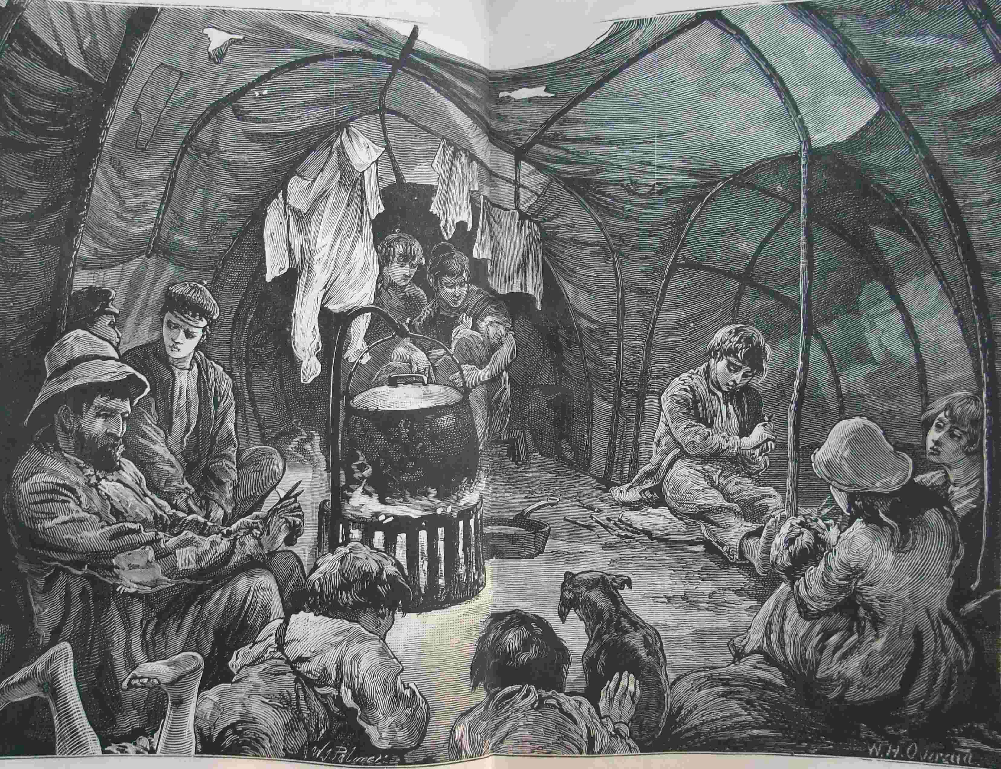 The origin of the Gipsies, as to who they are; when they became regarded as a peculiar race of wandering, wastrel, ragamuffin vagabonds; the primary object they had in view in setting out upon their shuffling, skulking, sneaking, dark pilgrimage; whether they were driven at the point of the sword, or allured onwards by the love of gold, designing dark deeds of plunder, cruelty, and murder, or anxious to seek a haven of rest; the route by which they travelled, whether over hill and dale, by the side of the river and valley, skirting the edge of forest and dell, delighting in the jungle, or pitching their tent in the desert, following the shores of the ocean, or topping the mountains; whether they were Indians, Persians, Egyptians, Ishmaelites, Roumanians, Peruvians, Turks, Hungarians, Spaniards, or Bohemians; the end of their destination; their religious views—if any—their habits and modes of life have been during the last three or four centuries wrapped, surrounded, and encircled in mystery, according to some writers who have been studying the Gipsy character. They have been a theme upon which a “bookworm” could gloat, a chest of secret drawers into which the curious delight to pry, a difficult problem in Euclid for the mathematician to solve; and an unreadable book for the author. A conglomeration of languages for the p. 2scholar, a puzzle for the historian, and a subject for the novelist. These are points which it is not the object of this book to attempt to clear up and settle; all it aims at, as in the case of my “Cry of the Children from the Brick-yards of England,” and “Our Canal Population,” is, to tell “A Dark Chapter in the Annals of the Poor,” little wanderers, houseless, homeless, and friendless in our midst. At the same time it will be necessary to take a glimpse at some of the leading features of the historical part of their lives in order to get, to some extent, a knowledge of the “little ones” whose pitiable case I have ventured to take in hand.