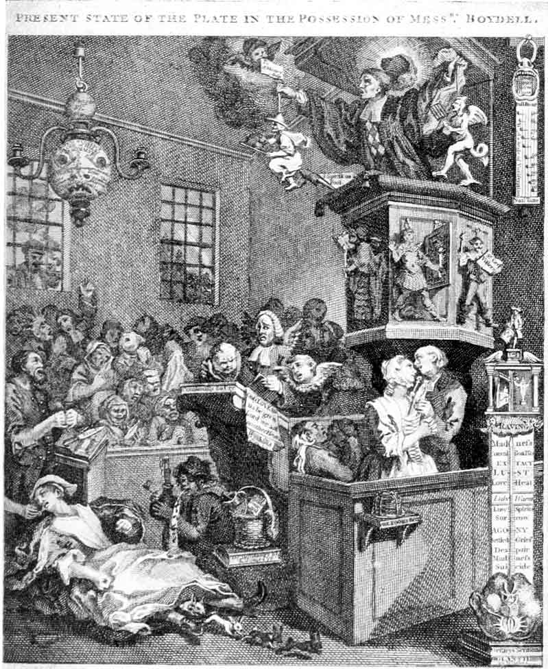“Enthusiasm Delineated. (Humbly dedicated to his Grace the Arch Bishop of Canterbury by his Graces most obedient humble Servant Wm. Hogarth”) ▶ … Between pages 88 and 89