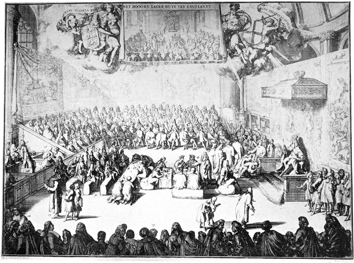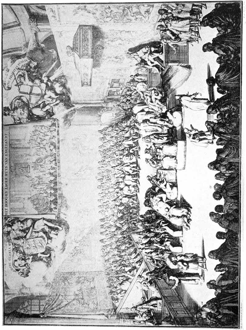 The plate in its second state, now representing George I. presiding over the House of Lords ▶ … Between pages 236 and 237