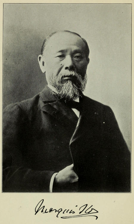 When we reached the “Kyoto Hotel,” at the time appointed we were ushered into the room where Marquis Ito, his aide-de-camp, General Murata, his attending physician, his secretary, and four guests besides ourselves, were already gathered. After leaving the luncheon table, we had scarcely entered the parlor when the Marquis’ secretary said: “The Marquis would like to see you in his room.” I followed to the private parlor, from which the two servants, who were laughing and chatting before the open fire, were dismissed by a wave of the hand, and pointing me to a chair and seating himself, the Marquis began immediately upon the matters for conference about which the interview had been arranged.
